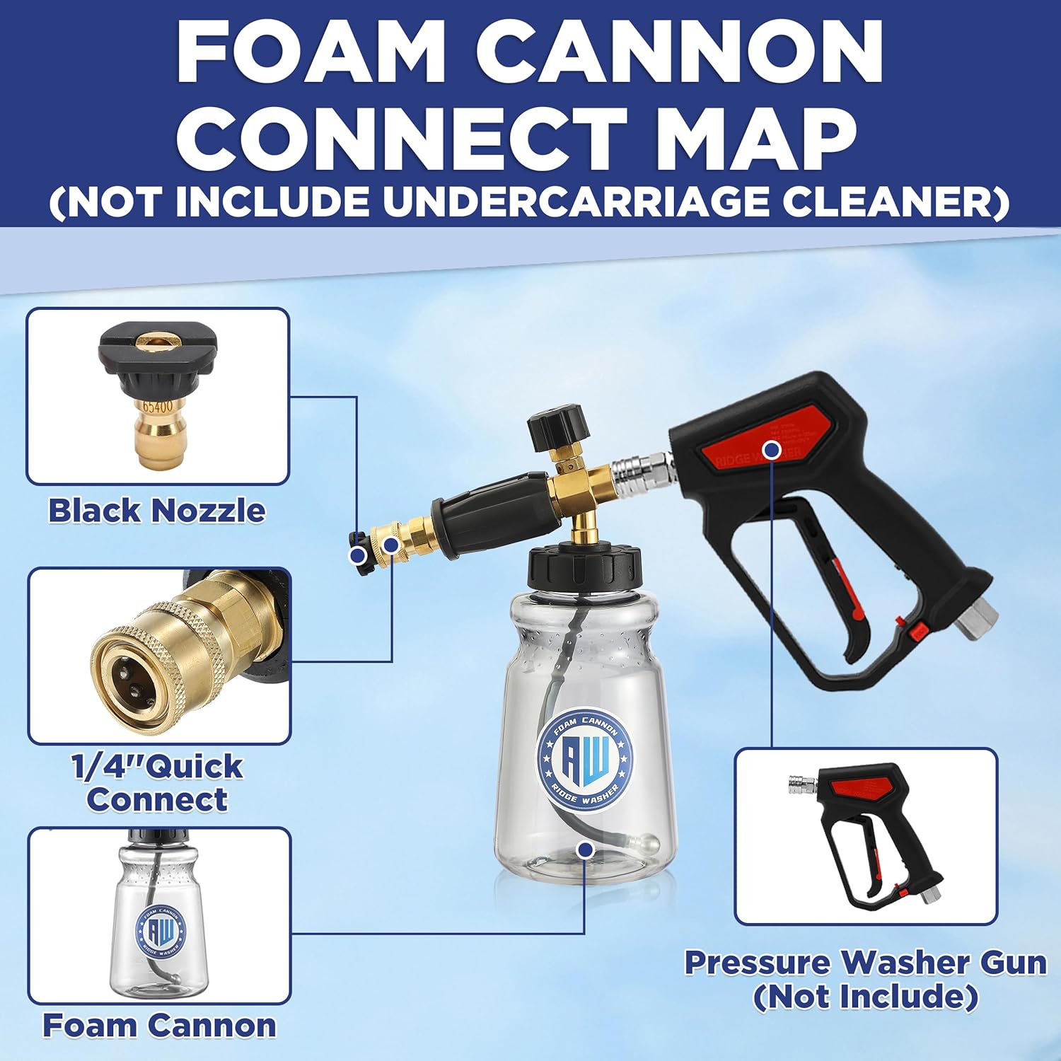 RIDGE WASHER Pressure Washer Undercarriage Cleaner, 16 Inch Undercarriage Washer with Foam Cannon, under Car Cleaner with Straight Extension Wand, 4000 PSI